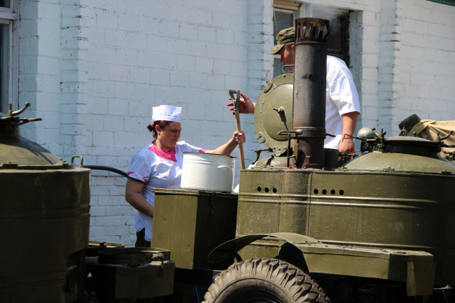 И конечно, никто не ушёл с праздника голодным. Гостям было предложено отведать солдатской каши, детворе раздавали пирожки и мороженое.