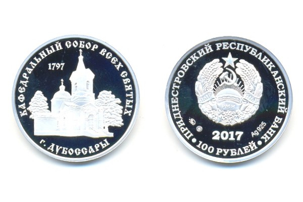 Тирасполь, 14 апреля. /Новости Приднестровья/. С 14 апреля Приднестровский республиканский банк вводит в обращение памятную серебряную монету достоинством 100 рублей «Кафедральный собор всех святых г. Дубоссары» серии «Православные храмы Приднестровья».