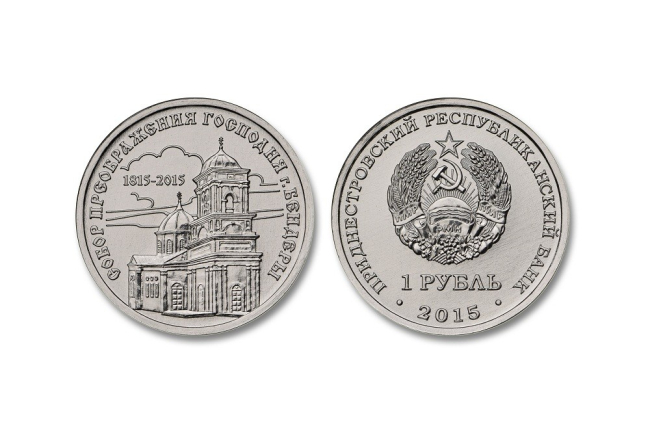В ознаменование 200-летнего юбилея со дня закладки Собора Преображения Господня" г. Бендеры, с 30 июля 2015 года Приднестровский республиканский банк вводит в обращение памятную монету «Собор Преображения Господня г. Бендеры» номиналом 1 рубль, которая продолжит нумизматическую серию «Православные храмы Приднестровья».