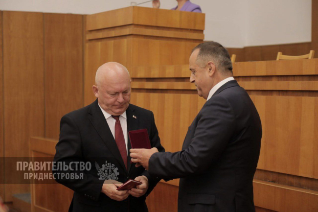 За преданность своему делу и неравнодушие к судьбе родной земли Александр Розенберг вручил Владимиру Бычкову орден «За заслуги II степени». Указ подписал Президент ПМР Вадим Красносельский.