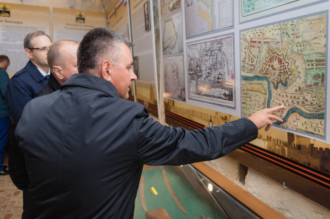 Участники встречи посетили музей крепости и выставочный зал. Виктор Крыжановский отметил оригинальность оформления и просторность помещения. Интересным он нашел решение разместить в центре зала постоянную экспозицию, отражающую героическую военную историю края. Собеседники говорили об удивительных переплетениях истории различных государств и об их современных отношениях, о ценности работы, проводимой для сохранения памяти о прошлом, о развитии туризма в Приднестровье и о перспективах приднестровско-украинского сотрудничества в этом направлении.