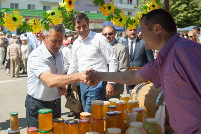 «Потенциал приднестровской экономики велик, перспективы развития есть. Нам есть, что предложить. И заинтересовать надо, в первую очередь, внутреннего потребителя. Опыт прошлого года показал, что приднестровцы не владели информацией обо всем разнообразии и качестве продукции местных производителей. Приднестровцы – как предприниматели, так и потребители – с удовольствием участвуют в ярмарках. Сегодня в Бендерах представлено больше восьми десятков предприятий и организаций – это на 11 больше, чем в прошлом году. Всего в проекте задействовано больше двух сотен участников», – отметил президент.