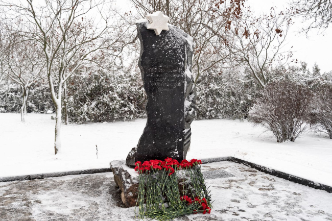 Тирасполь, 27 января. /Новости Приднестровья/. Сегодняшний день отмечен в календаре памятных дат как Международный день памяти жертв Холокоста. Руководство республики возложило по этому случаю цветы к тираспольскому памятнику, установленному три года назад на месте, где в годы немецко-румынской оккупации расстреливали мирное население. От имени приднестровского народа гвоздики к подножию камня, увенчанного шестиконечной звездой, опустил глава приднестровского государства Вадим Красносельский.
