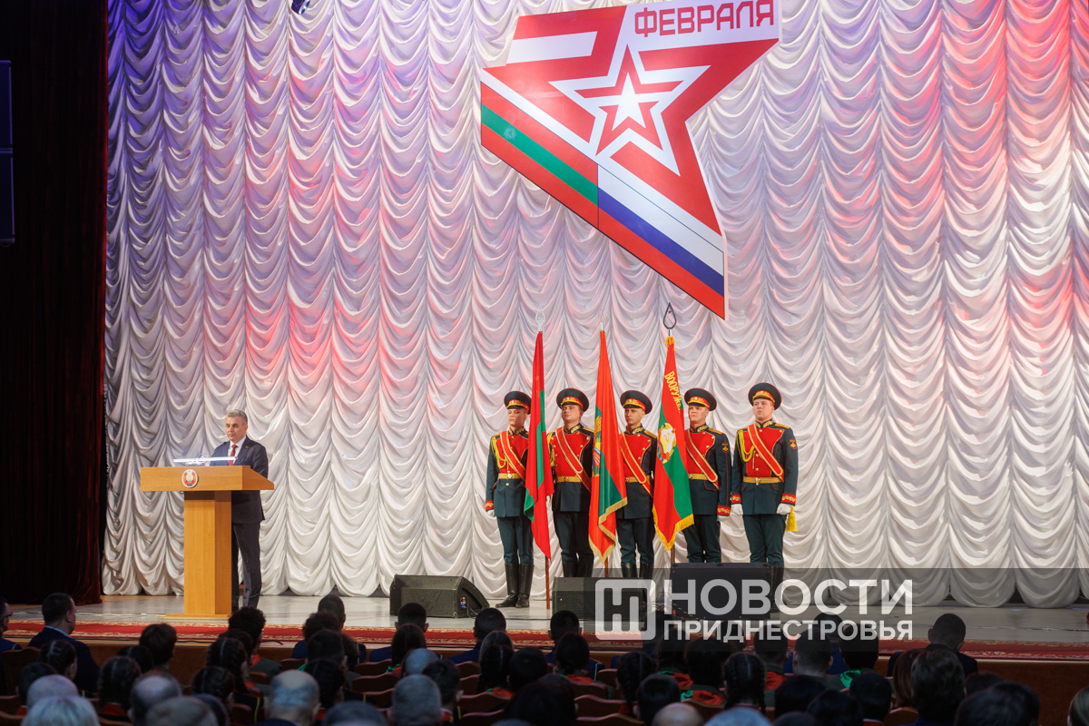 Президент ПМР Вадим Красносельский принял участие в торжественном собрании по случаю Дня защитника Отечества