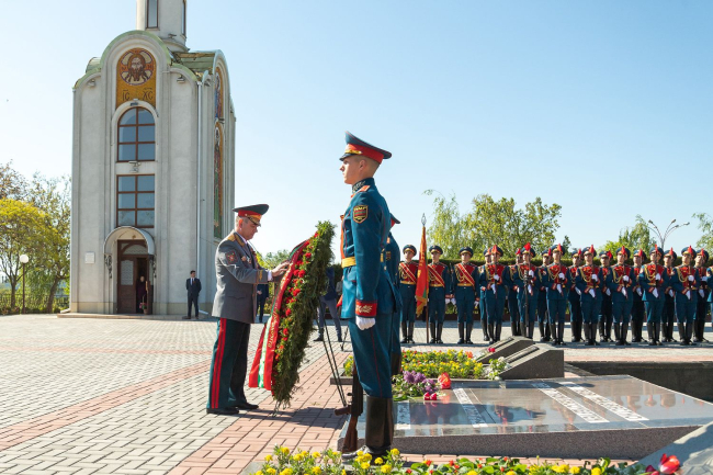 Тирасполь, 9 мая. /Новости Приднестровья/. На столичном Мемориале Славы руководство республики, ветераны Великой Отечественной войны, командование Оперативной группы российский войск в Приднестровье и священнослужители Тираспольско-Дубоссарской епархии возложили цветы.