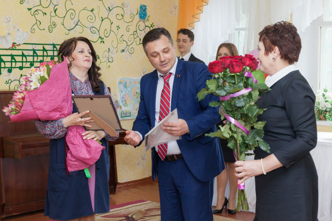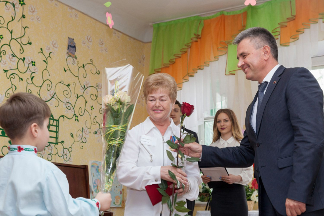 Сегодня члены делегации во главе с президентом Вадимом Красносельским стали участниками праздничного торжества. Юные воспитанники детского сада подготовили творческие номера, а глава государства вручил им комплекты спальных принадлежностей, в обновлении которых учреждение давно нуждалось. Отличившиеся работники отмечены государственными наградами.