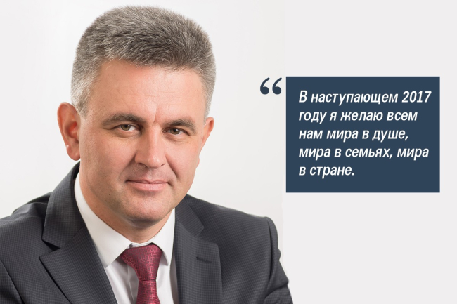 Дорогие друзья! В наступающем году нам предстоит многое сделать в улучшении жизни всех граждан, в заботе о детях Приднестровья. Пусть в новом году дела у всех будут успешными, ведь из этого складывается жизнь всего народа. И чем больше успешных и талантливых людей будет жить в Приднестровье, тем богаче и счастливее будет наш край.
