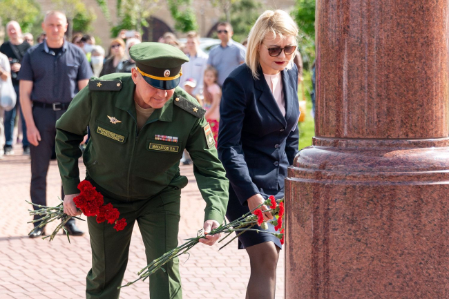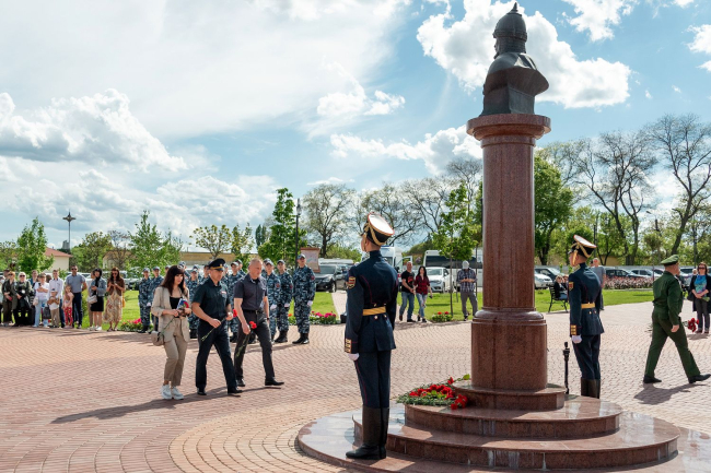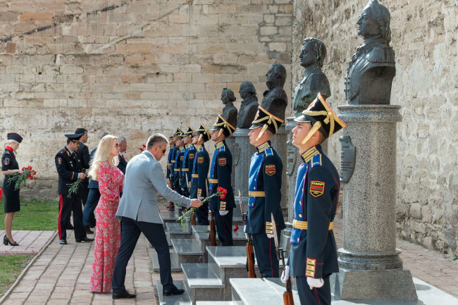К подножию памятника благоверному князю Александру Невскому и к бюстам великих полководцев, установленным на Пантеоне Русской Славы у цитадели крепости, легли цветы.