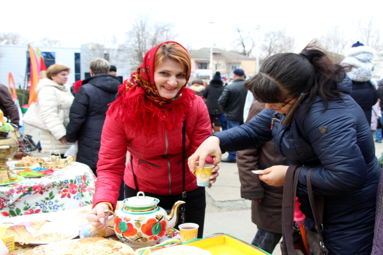 На площади Защитников в Дубоссарах собрались люди разных национальностей. Для них творческие коллективы Управления культуры подготовили интересную программу с главными символами и атрибутами праздников – Масленицы и Мэрцишора.