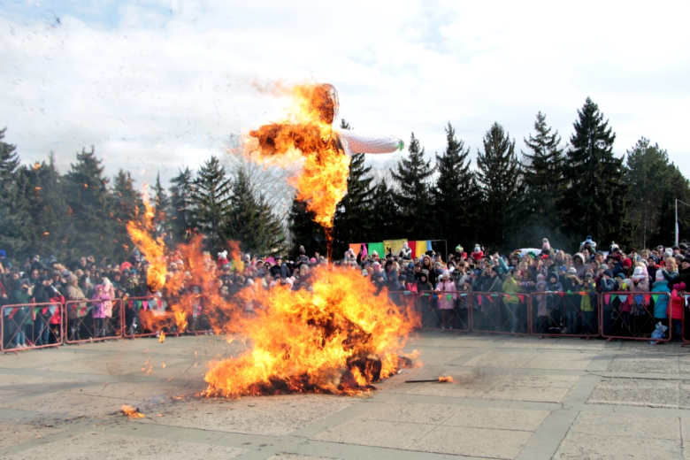 По традиции народный праздник завершился сжиганием чучела – символа зимы. Считается, что таким образом люди освобождают себя от старых обид, накопленных за год, и встречают новый год с чистым сердцем и лёгкой душой.