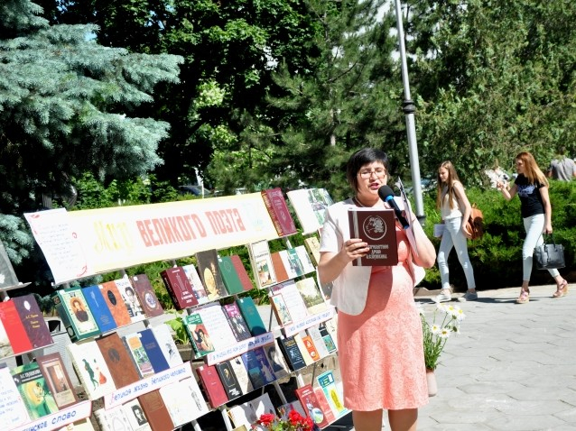 Затем горожанам представили книжную выставку «Мир великого поэта». В нее вошли собрания сочинений Пушкина, исследования его творчества, биографии поэта в разных аспектах, ведь Пушкиниана поистине безгранична, и Пушкин у каждого свой.