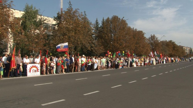 Состоялся в Дубоссарах и парад-шествие трудовых коллективов. С государственными, городскими и ведомственными флагами по главной площади города прошли колонны представителей общественных организаций, предприятий и учреждений. Затем на улице Советской развернулась культурная акция «Единство приднестровского народа».