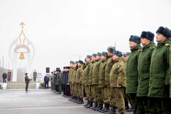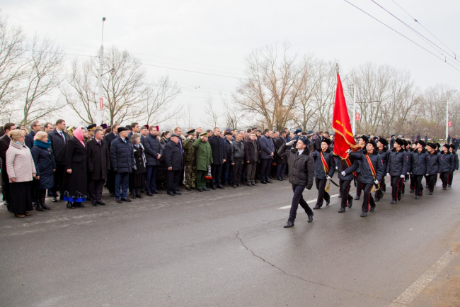 После освящения Арки «Блаженны миротворцы» вдоль нее праздничным маршем проследовали расчеты силовых структур Приднестровской Молдавской Республики и курсантов учебных заведений Министерства обороны и МВД ПМР.