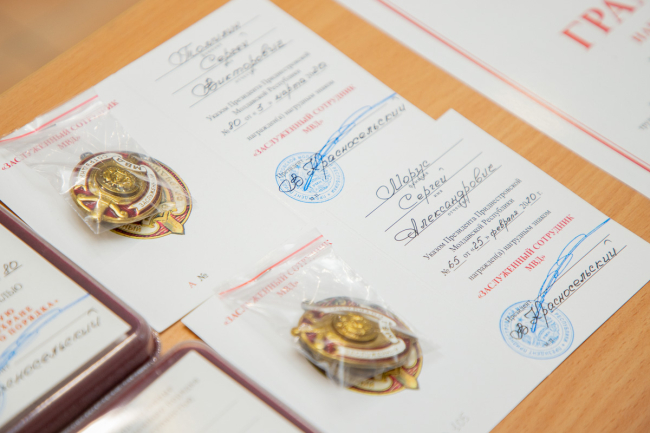 В честь праздника сотрудников отметили государственными и ведомственными наградами. Также было вручено переходящее знамя лучшему территориальному подразделению. Им по итогам прошлого года оказалось столичное УВД.