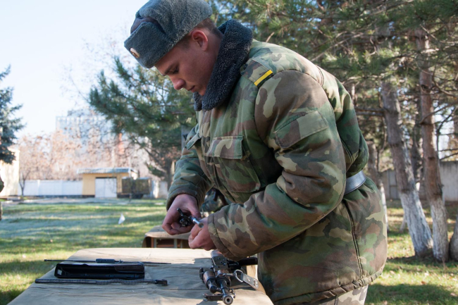 Тирасполь, 23 ноября. /Новости Приднестровья/. В рамках итоговой проверки артиллеристы Вооружённых сил ПМР на специально оборудованных учебных местах выполнили нормативы по огневой подготовке: неполная разборка и сборка автомата Калашникова, а также изготовка к стрельбе из положения лежа, сообщает пресс-служба Минобороны ПМР.