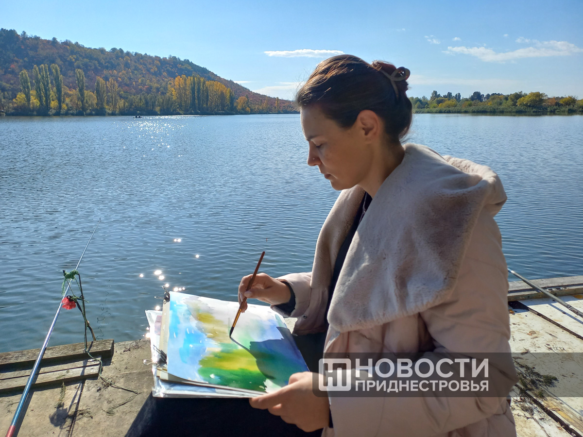 «Мне нравится рисовать на таких пленэрах акварелью. Здесь очень уютно, нам повезло с погодой: шикарный вид, птички поют, рыбка плещется – атмосфера просто волшебная. Всё располагает к творчеству. Я давно хотела здесь побывать, и сегодня моя мечта сбылась, - рассказала Дарья Тарнавская. - Это возможность не только создать картину, но и вспомнить, как важно чувствовать природу, писать по мокрому (техника живописи, при которой краска наносится на предварительно смоченную бумагу – прим. ред.), держать кисть свободно».