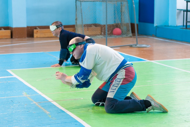 Справочно: Торбол - это игра для людей с нарушением зрения (мужчин и женщин). В игре принимают участие две команды, в каждой по три игрока. Игра проводится в спортивном зале. Ворота находятся по обоим концам прямоугольного поля. Играют озвученным мячом (внутри находится колокольчик), который при броске должен пройти под тремя натянутыми поперек площадки шнурами.