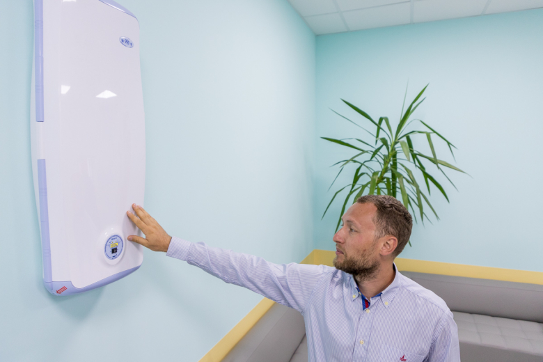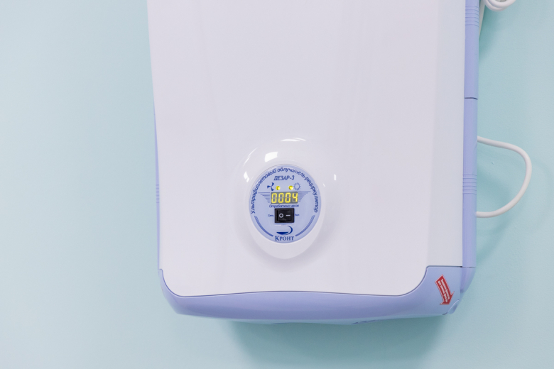 Ещё одно новшество – ультрафиолетовые облучатели-рециркуляторы. Это оборудование, которое позволяет обеззараживать воздух. Его эффективность – 99%, он фильтрует мельчайшие частицы до 10 микрон и работает круглосуточно. На человека облучатель никак не влияет.