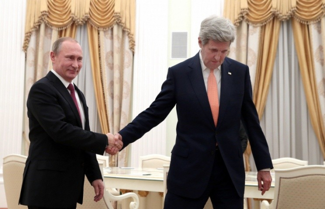 Президент России рассчитывает, что визит госсекретаря США Джона Керри позволит сблизить позиции США и РФ по Сирии и Украине. Об этом он сообщил на встрече с главой американской демократии после переговоров Керри с министром иностранных дел РФ Сергеем Лавровым. Госсекретарь в свою очередь предложил обсудить ряд идей США по урегулированию этих кризисных ситуаций.