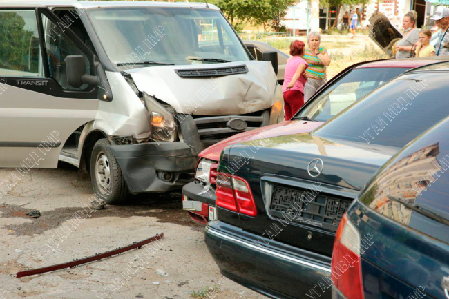 Водитель 29 лет за рулём автомобиля Ford столкнулся с ехавшим Seat. После удара микроавтобус продолжил движение и въехал в припаркованный Volkswagen, который по инерции ударил Mercedes, а тот – Nissan, сообщает пресс-служба МВД ПМР.