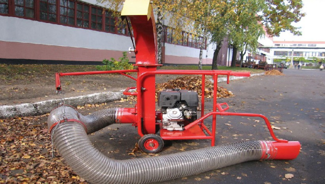 Агрегат работает по методу бытового пылесоса. Он стремительно засасывает собранную в кучу листву, тут же её перемалывает и сбрасывает в прицеп, сообщает газета «Приднестровье».