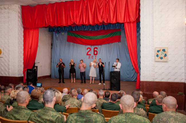 Торжественное собрание завершилось праздничным концертом, в котором выступили солисты Главного штаба Вооруженных сил Приднестровья.