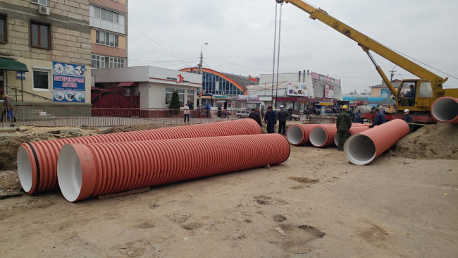 Основание старого коллектора расчистили, в него же поместили новую пластиковую трубу диаметром 800 мм. По завершении ремонта данного участка коммунальщики Бендер возьмутся за следующий, такой же длины – в сторону улицы Калинина.