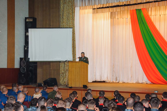 От имени председателя Верховного Совета ПМР поздравил военнослужащих депутат Верховного Совета ПМР, заместитель председателя Комитета Верховного Совета по законодательству, обороне, безопасности, миротворческой деятельности, правоохранительным органам, защите прав и свобод граждан Григорий Дьяченко.