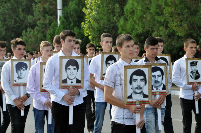 Вспоминали сегодня соотечественников, которые погибли при защите Приднестровья. По площади прошёл Бессмертный полк с фотографиями 31 рыбничанина.