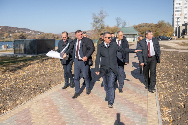Глава государства проинспектировал ход работ по реконструкции центральной площади Рыбницы и побывал на городской набережной