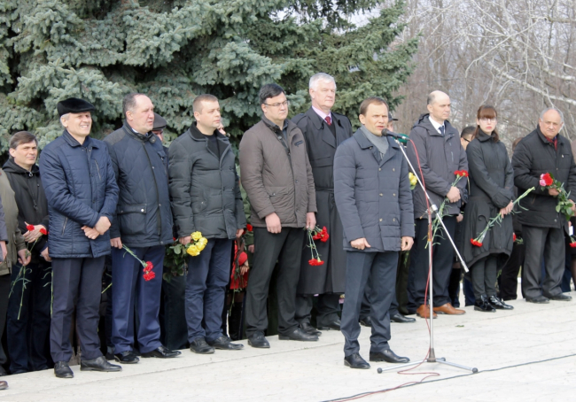 Приуроченные к этой дате мероприятия начались с возложения цветов к памятному знаку генерал-майору Цветкову