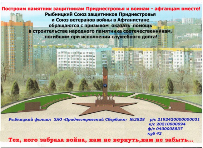 Рыбницкие общественники просят оказать помощь в строительстве памятника защитникам ПМР и воинам-афганцам