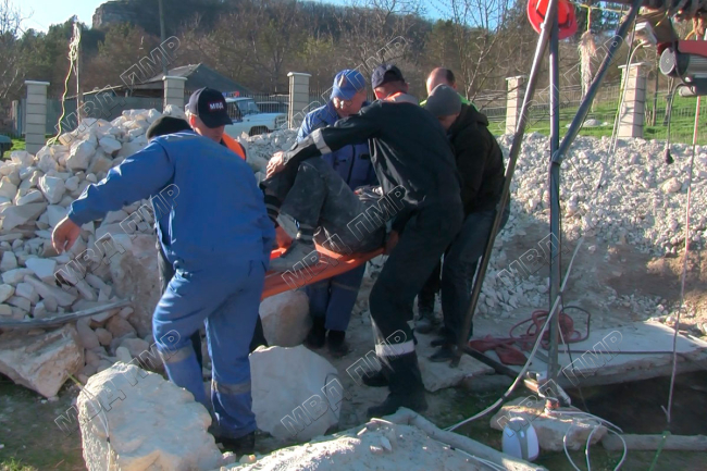 Сотрудники аварийно-спасательного подразделения прибыли на место и приступили к операции по спасению. Чтобы достать человека с глубины 18 метров, специалисты группы экстренного реагирования спустились, используя альпинистское снаряжение. Пострадавший плохо изъяснялся по-русски, находился в шоковом состоянии. На него надели шейный бандаж и при помощи спасательной косынки и страховочного троса подняли наверх.
