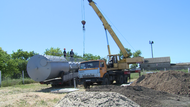 Второй объект – это водонапорная башня весом 7 тонн и толщиной 12 миллиметров, изготовлена на территории Приднестровья. Ее сегодня привезли и выгрузили у места установки. «В прошлом году на этом месте мы уже пробурили скважину по аналогичной программе, но башня водонапорная не была установлена», - сообщил он.