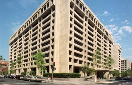 На фотографии изображено здание штаб-квартиры МВФ в Вашингтоне.