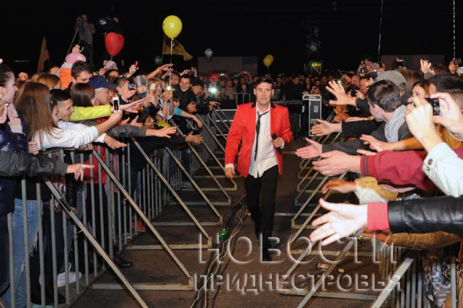 Концертная программа, прошедшая сегодня вечером на центральной площади Тирасполя, приурочена празднованию 222-й годовщины со дня основания города и состоялась при поддержке ОАО «Эксимбанк». Среди приглашенных артистов - звёзды эстрады из Молдовы, России и Германии: кишинёвская вокальная группа «Brio Sonores», хор Московского Сретенского монастыря и группа «Bad Boys Blue».