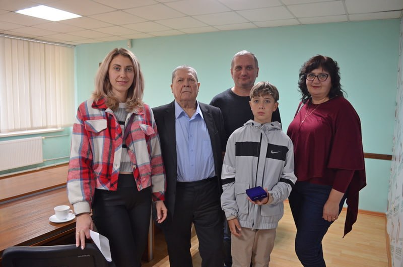 Медаль Владимиру Витязеву передала лидер партии «Обновление», зампредседателя Верховного Совета ПМР Галина Антюфеева. Момент получился трогательным: сын героя заплакал и поцеловал награду. Теперь медаль будет хранить правнук героя – тираспольский школьник Глеб Витязев.