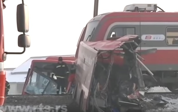 Школьный автобус столкнулся с поездом в Сербии
