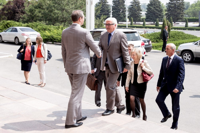 Действующий председатель ОБСЕ, министр иностранных дел Германии Франк-Вальтер Штайнмайер встретился с Председателем Правительства ПМР Павлом Прокудиным. Стороны обсудили исполнение берлинского протокола, а также железнодорожную блокаду Приднестровья, организованную Молдовой и Украиной