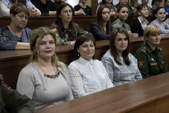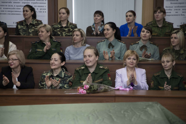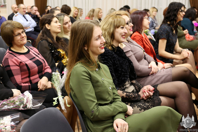 Вместо привычных форменных платьев – гражданские, нарядные. При входе в зал девушек и женщин встречали офицеры и дарили цветы. Рабочее совещание в канун 8 Марта приобрело праздничный окрас. Дам радовали яркими юмористическими номерами и концертной программой в непревзойдённом исполнении ведомственного ансамбля. Вокалисты – Отличный работник культуры ПМР Дмитрий Стоянов и Заслуженная артистка ПМР Екатерина Кучерявая – подготовили подборку тематических песен.