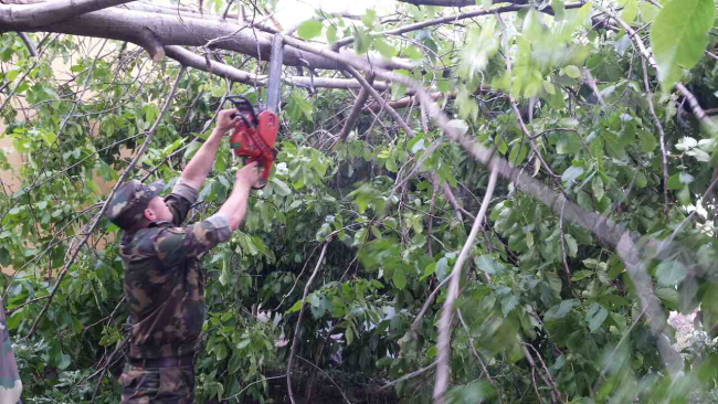 Тирасполь, 23 июня. /Новости Приднестровья/. Штормовой ветер, внезапно обрушившийся на Тирасполь, после обеда в пятницу повалил на некоторых улицах деревья и линию ЛЭП, сообщили нашему агентству в Штабе Гражданской защиты.
