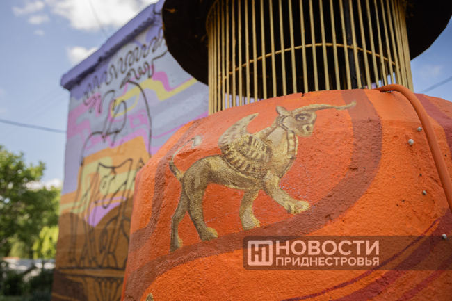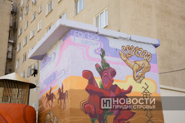 Тирасполь, 4 июня. /Новости Приднестровья/. В одном из дворов Тирасполя появился новый мурал - под названием «Скифское золото», созданный приднестровской художницей Александрой Новак. Она уже не в первый раз превращает безликие технические постройки в стрит-арт-объекты.