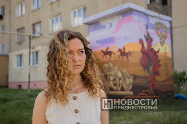 «Мурал я называю "Скифское золото", говоря не только о золотых украшениях, но и о том, что наше культурное наследие в виде того, что на территории современного Приднестровья жили скифы, для нас это реально скифское золото, и мы должны этим гордиться и должны поднять этот слой памяти. Я сделала первый шаг, и я думаю, что государство меня поддержит, и мы сделаем ещё несколько сюжетов на эту тему, чтобы вспомнить историю края», - делится художница.