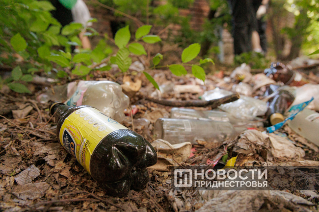 Несмотря на все усилия активистов, регулярные уборки не спасают сквер в Тирасполе от беспорядка. Особенно это заметно за оградой, где природа тонет в пластике и стекле.