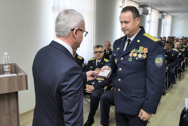 Тирасполь, 1 октября. /Новости Приднестровья/. В Государственном таможенном комитете сегодня прошло торжественное собрание, посвящённое 27-летию образования таможенных органов Приднестровья. Руководители ГТК вручили особо отличившимся таможенникам государственные и ведомственные награды. Также ряд сотрудников получили медали, грамоты и очередные звания.