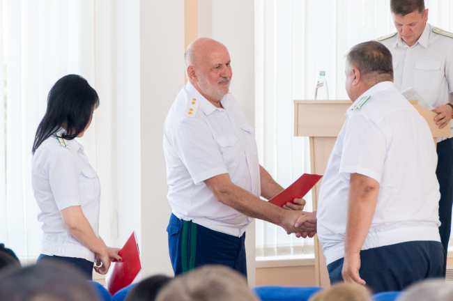 В ходе собрания был зачитан указ Президента о присвоении отличившимся работникам ведомства очередных классных чинов и государственных наград.