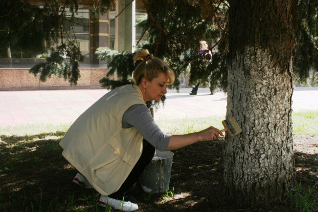 Полем для деятельности стала прилегающая территория Государственного культурного центра «Дворец Республики». Работы предстояло немало, с которой сотрудники справились успешно, сообщает пресс-служба ведомства. Газоны и клумбы с розами были убраны от прошлогодней травы, листьев и сухих веток, побелены деревья, очищены от мусора и подметены обочины тротуаров. Для этого у участников субботника был необходимый инвентарь – мётлы, грабли, лопаты, кисти и известь.