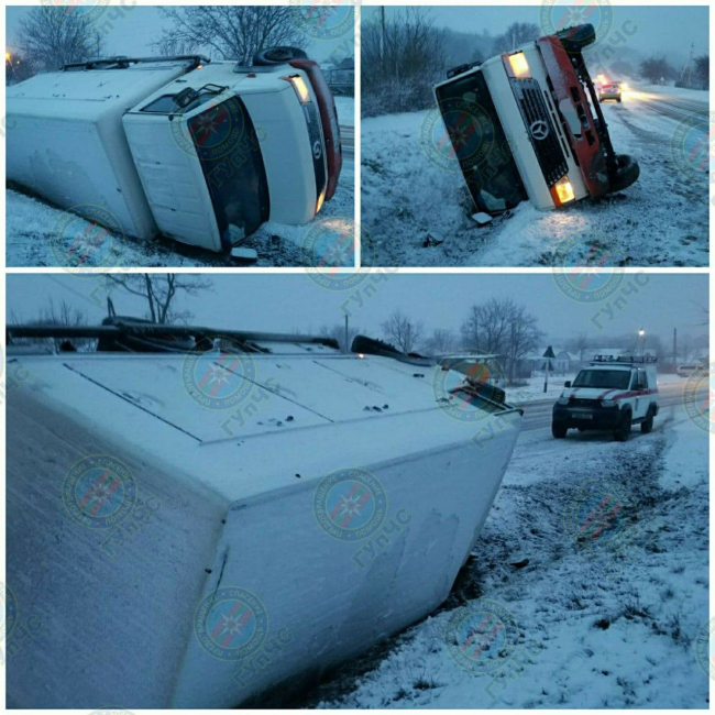 Около с. Дзержинского водитель автомобиля, гружённого продуктами питания, не рассчитал скорость на спуске, съехал в кювет и опрокинулся. У авто серьёзные механические повреждения.