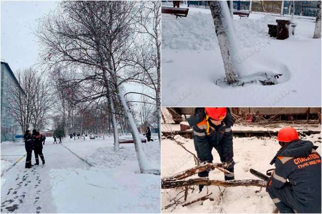 Сотрудники аварийно-спасательного подразделения предупредили, что эту территорию нужно срочно оградить, потому что по двору гимназии проходит много детей. Спасатели привязали ствол к машине, дерево вытянули, вывезли на базу и распилили на дрова. Поленья пригодятся для топки печки в передвижном пункте обогрева.
