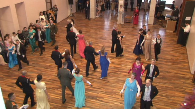 Участники исторического вечера представили традиционные бальные танцы — от полонеза до вальса — и даже смогли дать мастер-класс зрителям по греческому танцу бузуки. Организаторами мероприятия выступил клуб реконструкции исторического танца „Вернисаж“.